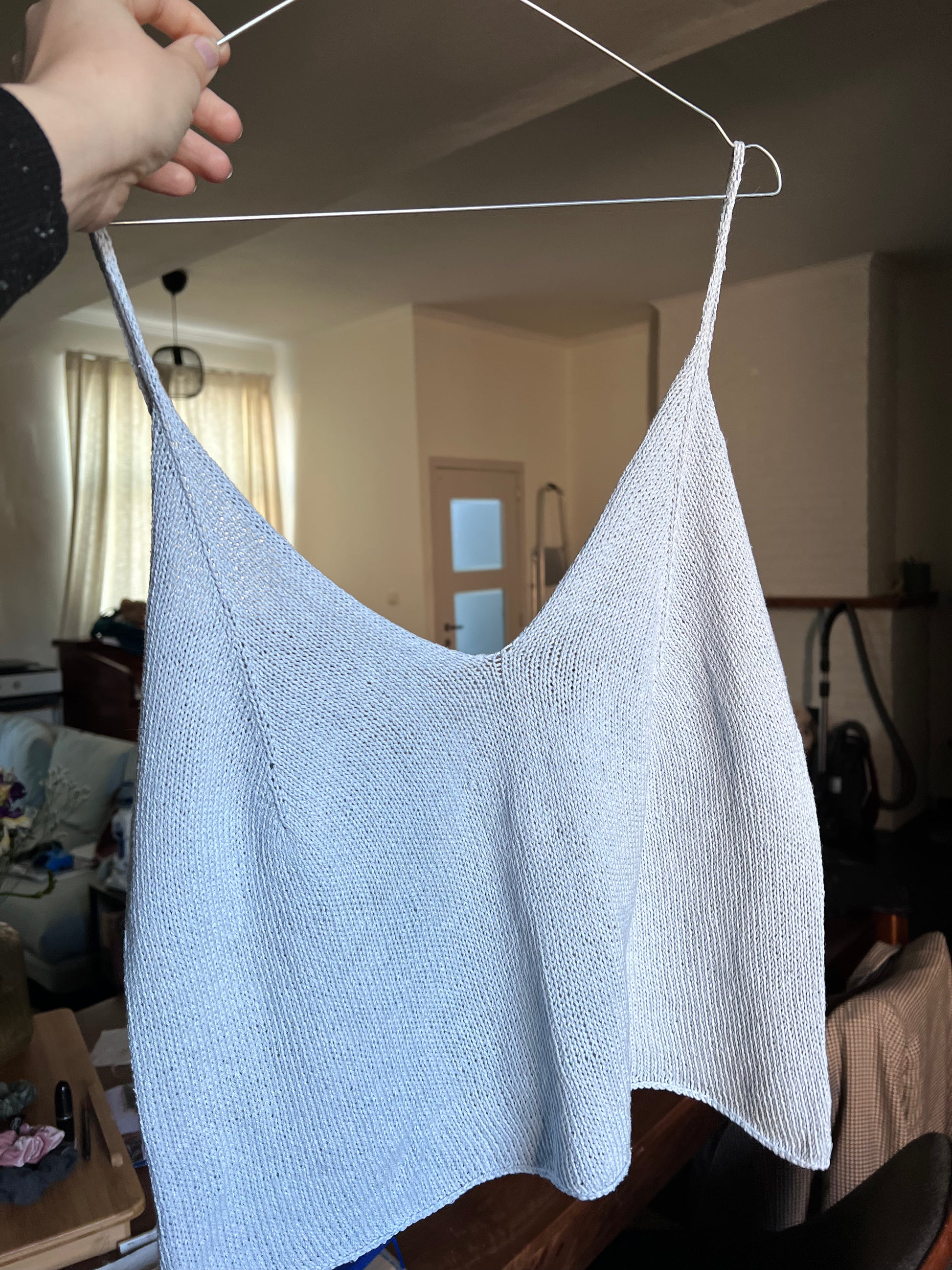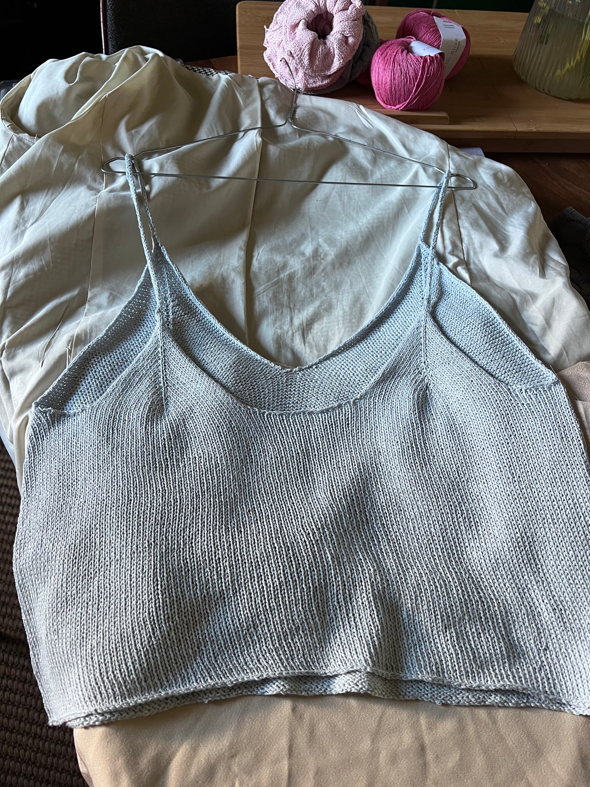 Een tof kleurkijk topje gebreid in Pure Silk. Pure Silk is ruwe, gesponnen zijde en dus perfect om te gebruiken in zomerkledij want zijde kan tot 30 procent van haar gewicht opnemen in vocht! Met andere woorden: geen okselvijvers of andere mogelijks gênante zweetplekken.